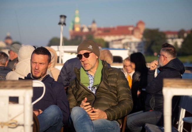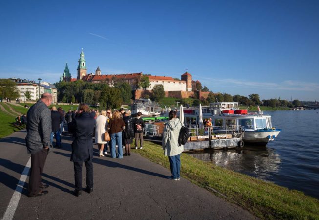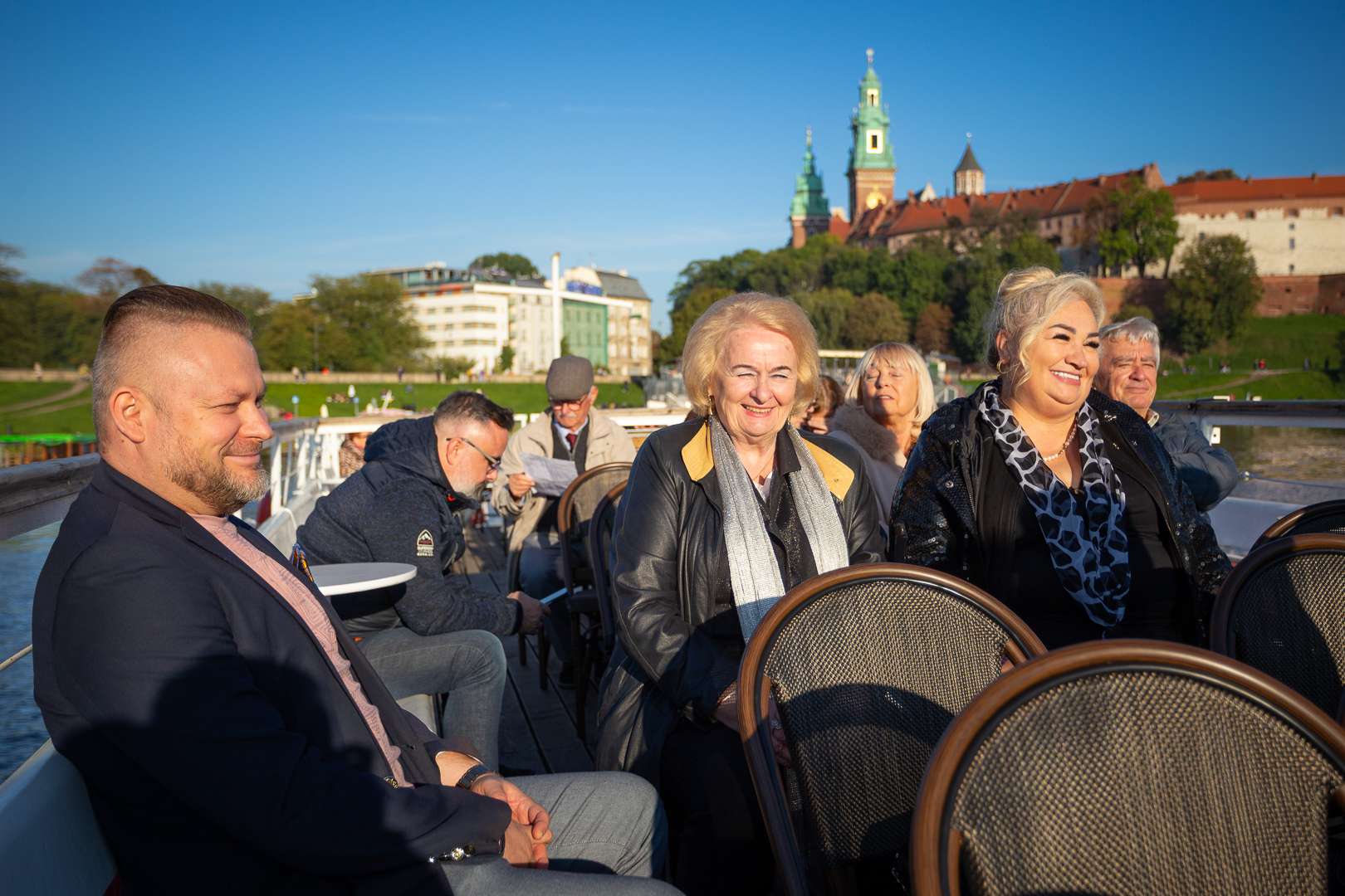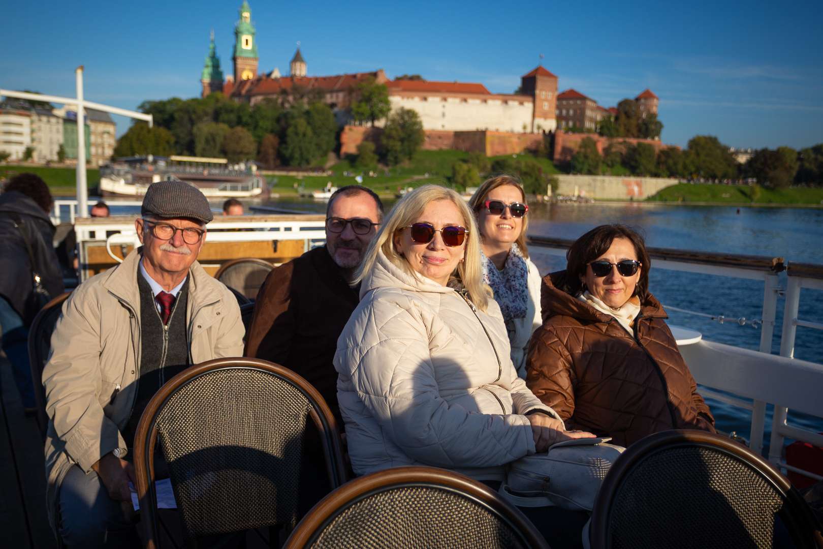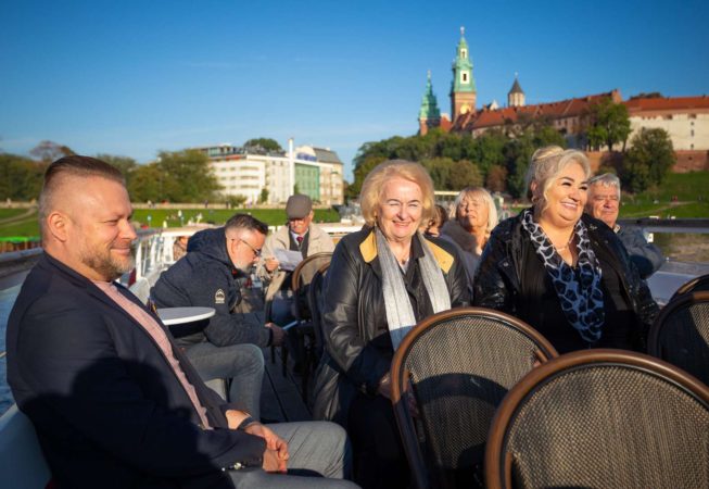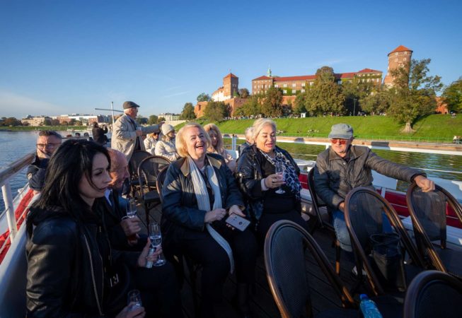Po powrocie do Krakowa tuż u podnóży Wawelu czekał statek, który zabrał wszystkich uczestników na niezapomniany rejs po Wiśle. Grupa ochoczo weszła na pokład, gdyż pogoda akurat w tym dniu była istnie wiosenna. Przez głośniki można było usłyszeć historię Krakowa, Lajkonika jak również szczegóły na temat zabytków umiejscowionych nad Wisłą na trasie rejsu.