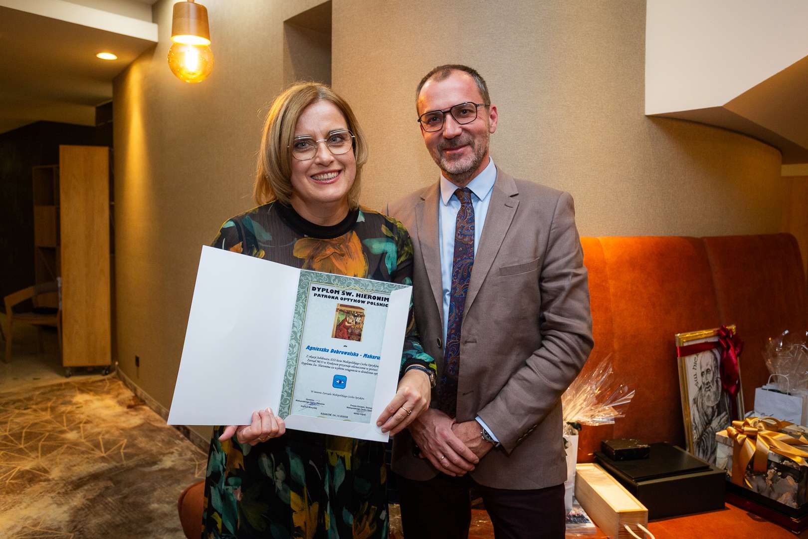 Następnie wręczono Dyplomy Świętego Hieronima – Patrona Optyków Polskich a uhonorowane nimi zostały następujące osoby: