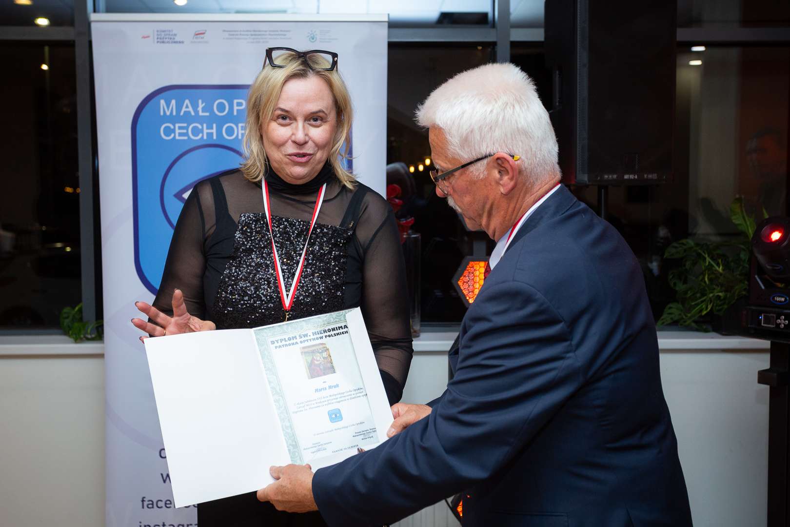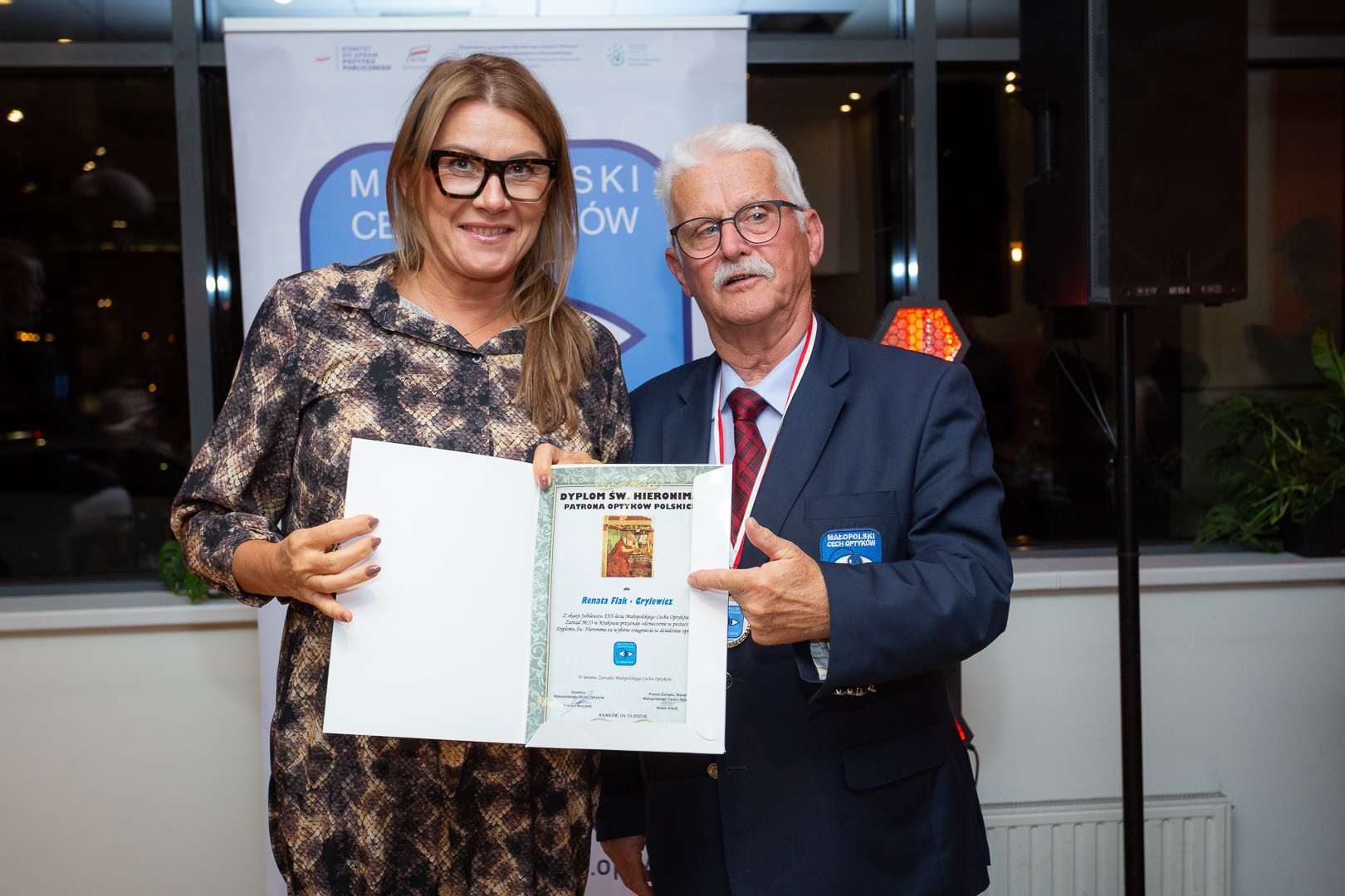 Prezes Małopolskiego Cechu Optyków Marian Wójcik wręczył Katarzynie Fiorencis certyfikat wraz z plastronem. Certyfikat ten jest dowodem świadczenia najwyższej jakości usług w dziedzinie optyki okularowej rekomendowany przez Małopolski Cech Optyków w Krakowie. Potwierdza przynależność do Cechu oraz elitarnej grupy salonów optycznych pod nazwą Mistrzowie Optyki.