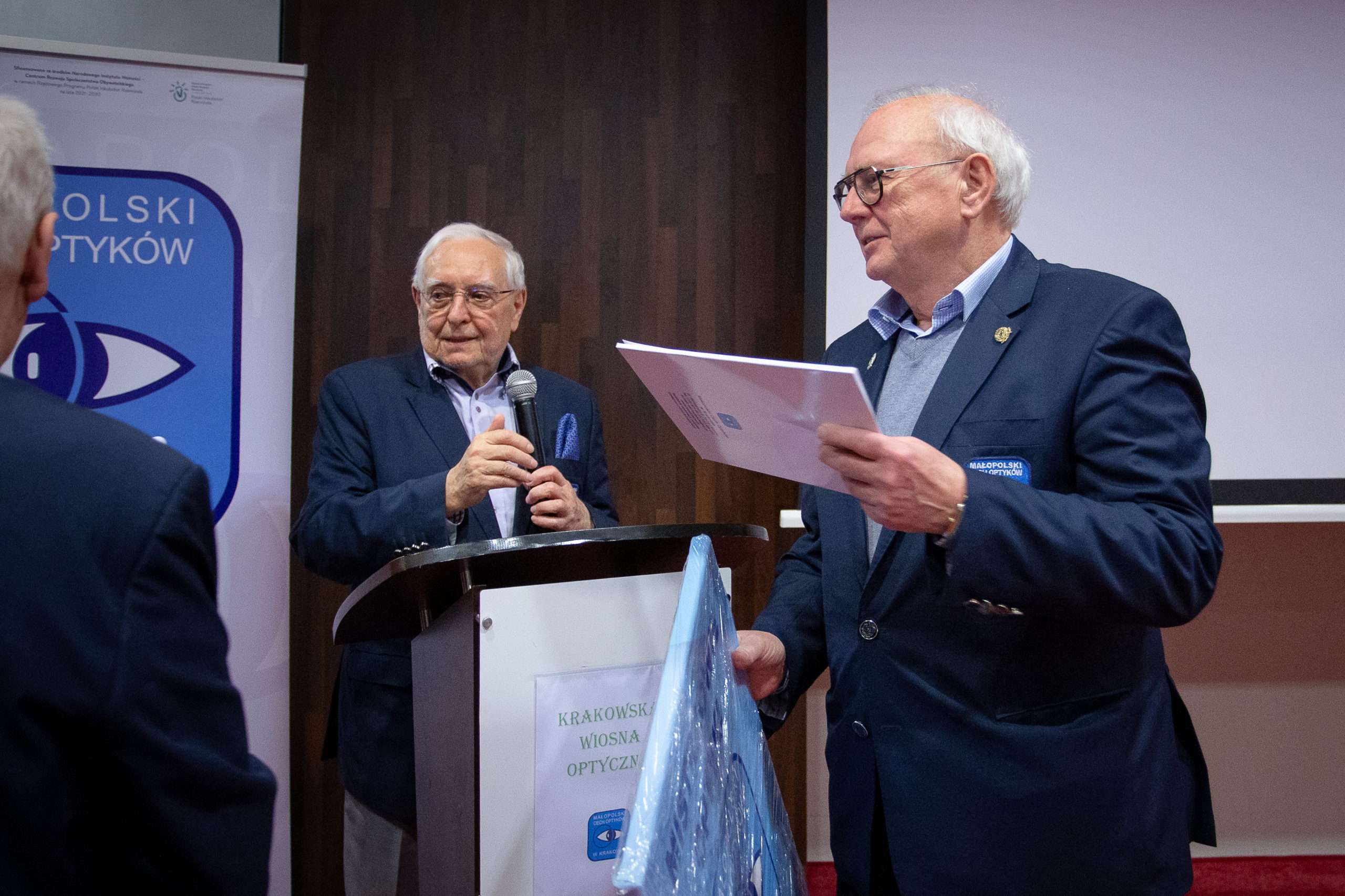 Odznaczenia wręczył osobiście Prezes Małopolskiego Cechu Optyków Maria Wójcik wraz z V-ce Prezesem MCO Romanem Brożkiem.