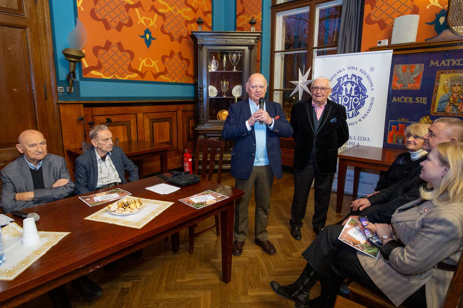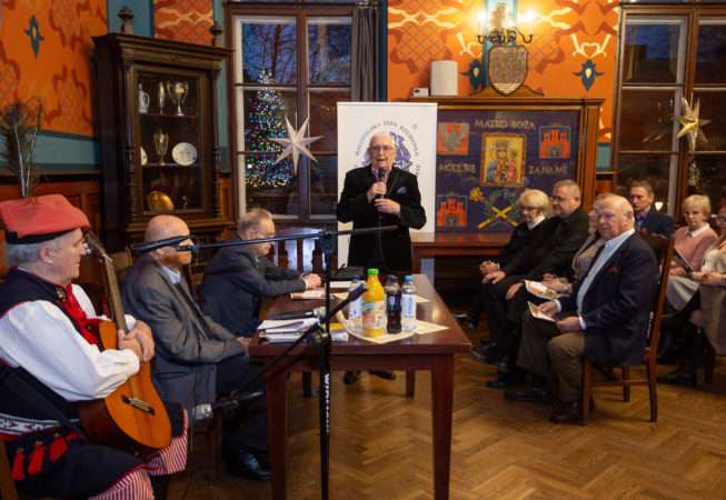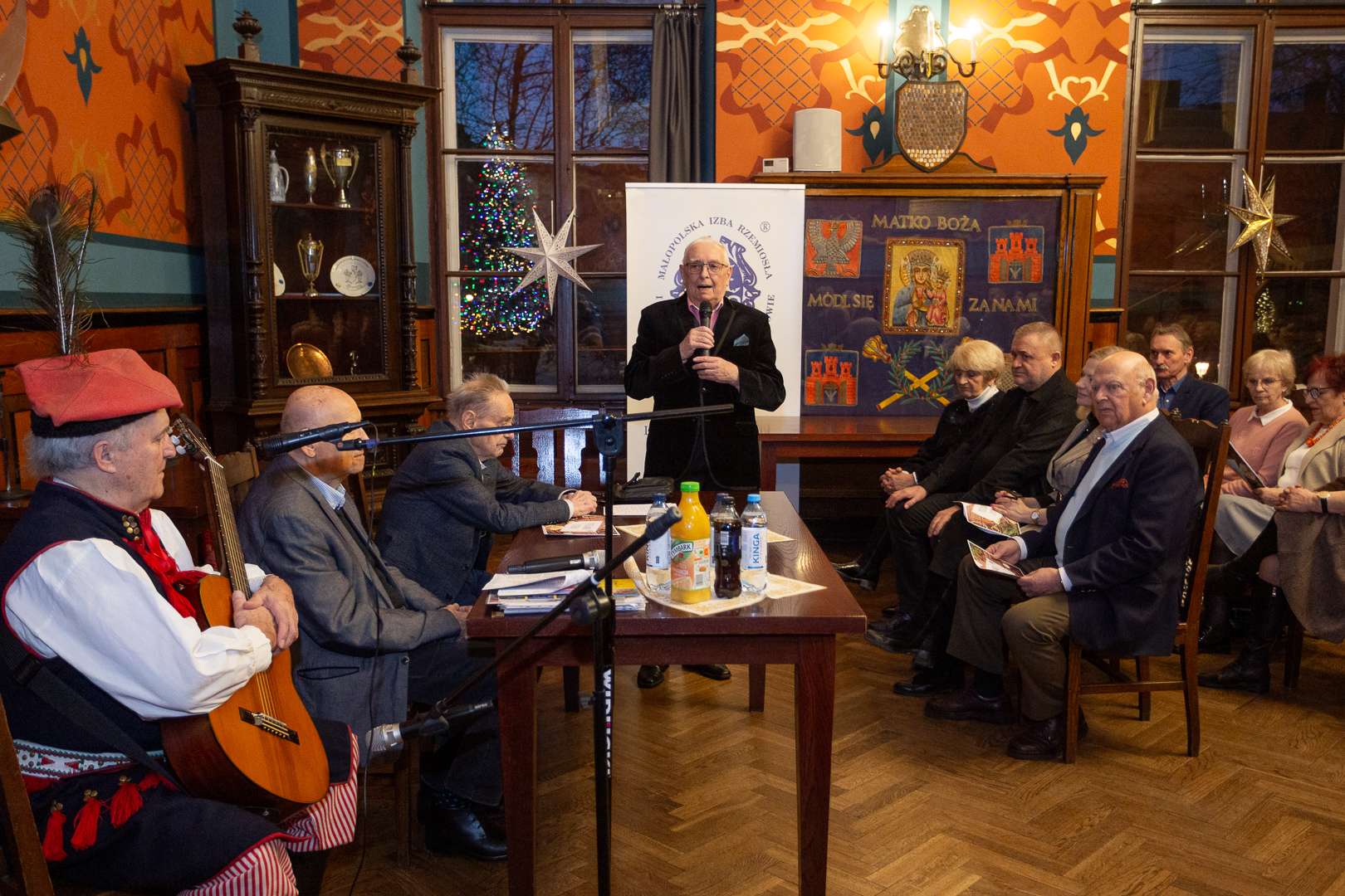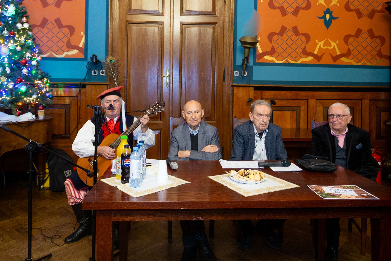 Tym razem spotkanie było wyjątkowe, gdyż to jego XX-sta jubileuszowa edycja, ale też wspomnienie zmarłego przez wszystkich zawsze uwielbianego Aleksandra „Makino” Kobylińskiego✨️ ”Makino” grał na „Pożegnaniu kolędy” od samego początku, tym razem zastąpił go Adam Królik – członek zespołu Mogilanie, który na spotkanie przybył w tradycyjnym stroju krakowskim🎊 Spotkanie rozpoczęło się od odegrania pastorałki ku pamięci Makino, której piękne słowa o Krakowie napisał Mieczysław Czuma 🎉 Historię kolęd oraz Krakowa przybliżyli jak zawsze Leszek Mazan oraz Mieczysław Czuma🧨 Wszystkich przybyłych Rzemieślników przywitał Prezes Małopolskiego Cechu Optyków Marian Wójcik🎎 Na spotkanie m. in. przybyli: Senator Monika Piątkowska, Prezes Krakowskiej Kongregacji Kupieckiej Wiesław Jopek, Prezes Małopolskiej Izby Rzemiosła i Przedsiębiorczości Janusz Kowalski wraz z zastępcą Andrzejem Dębowskim 🎇