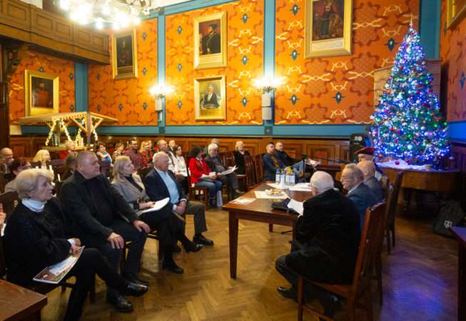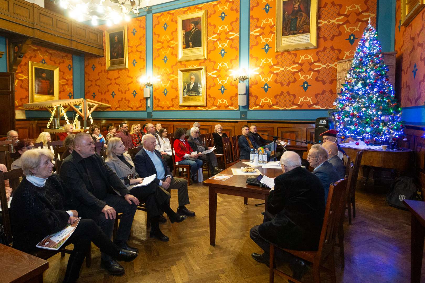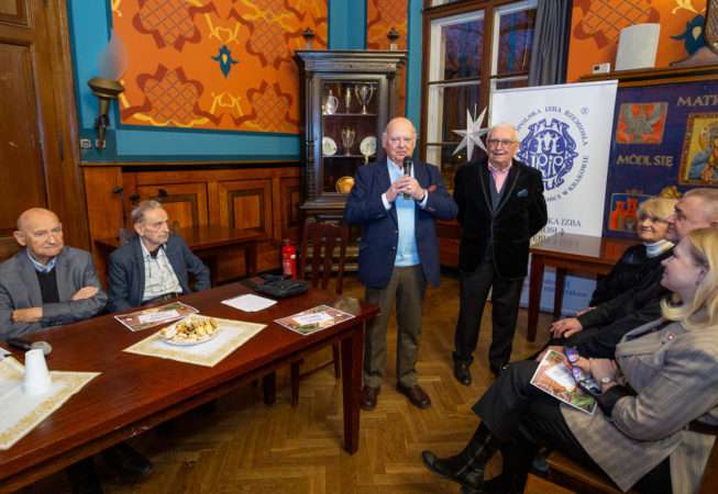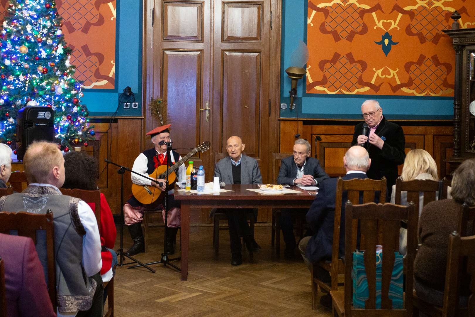 Tym razem spotkanie było wyjątkowe, gdyż to jego XX-sta jubileuszowa edycja, ale też wspomnienie zmarłego przez wszystkich zawsze uwielbianego Aleksandra „Makino” Kobylińskiego✨️ ”Makino” grał na „Pożegnaniu kolędy” od samego początku, tym razem zastąpił go Adam Królik – członek zespołu Mogilanie, który na spotkanie przybył w tradycyjnym stroju krakowskim🎊 Spotkanie rozpoczęło się od odegrania pastorałki ku pamięci Makino, której piękne słowa o Krakowie napisał Mieczysław Czuma 🎉 Historię kolęd oraz Krakowa przybliżyli jak zawsze Leszek Mazan oraz Mieczysław Czuma🧨 Wszystkich przybyłych Rzemieślników przywitał Prezes Małopolskiego Cechu Optyków Marian Wójcik🎎 Na spotkanie m. in. przybyli: Senator Monika Piątkowska, Prezes Krakowskiej Kongregacji Kupieckiej Wiesław Jopek, Prezes Małopolskiej Izby Rzemiosła i Przedsiębiorczości Janusz Kowalski wraz z zastępcą Andrzejem Dębowskim 🎇
